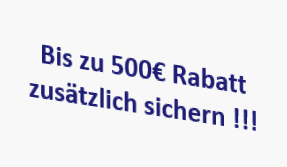 * beide Rabattaktionen sind pro Kunde einmal einlösbar. Der maximal mögliche Rabatt pro Kunde beträgt somit 500 Euro